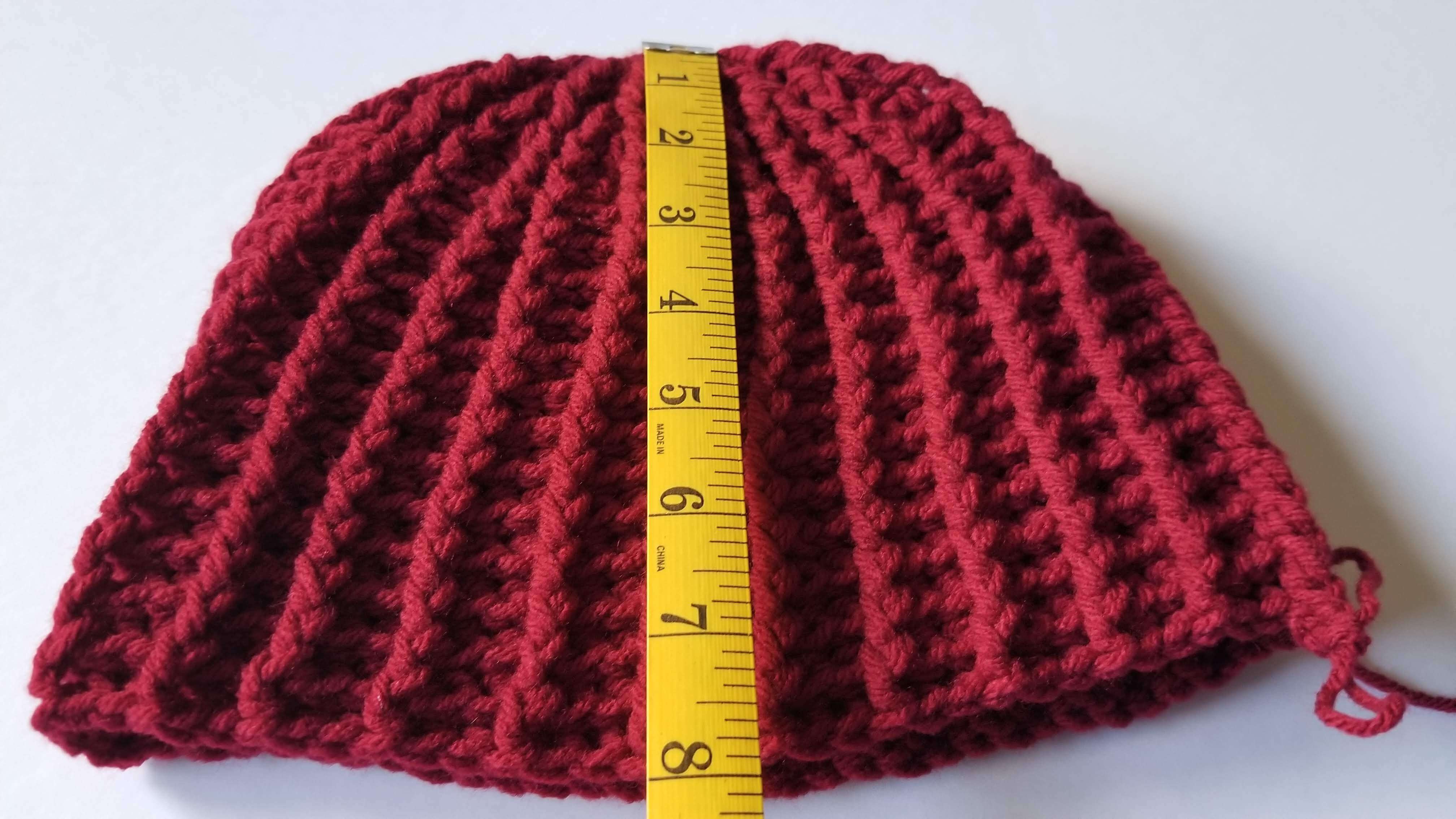 It is worked from the top down, increasing every row until Row 6. Measure the head and work the crown until you achieve the proper measurement. If you don’t have a head to measure, use the hat measurement chart to guide you.