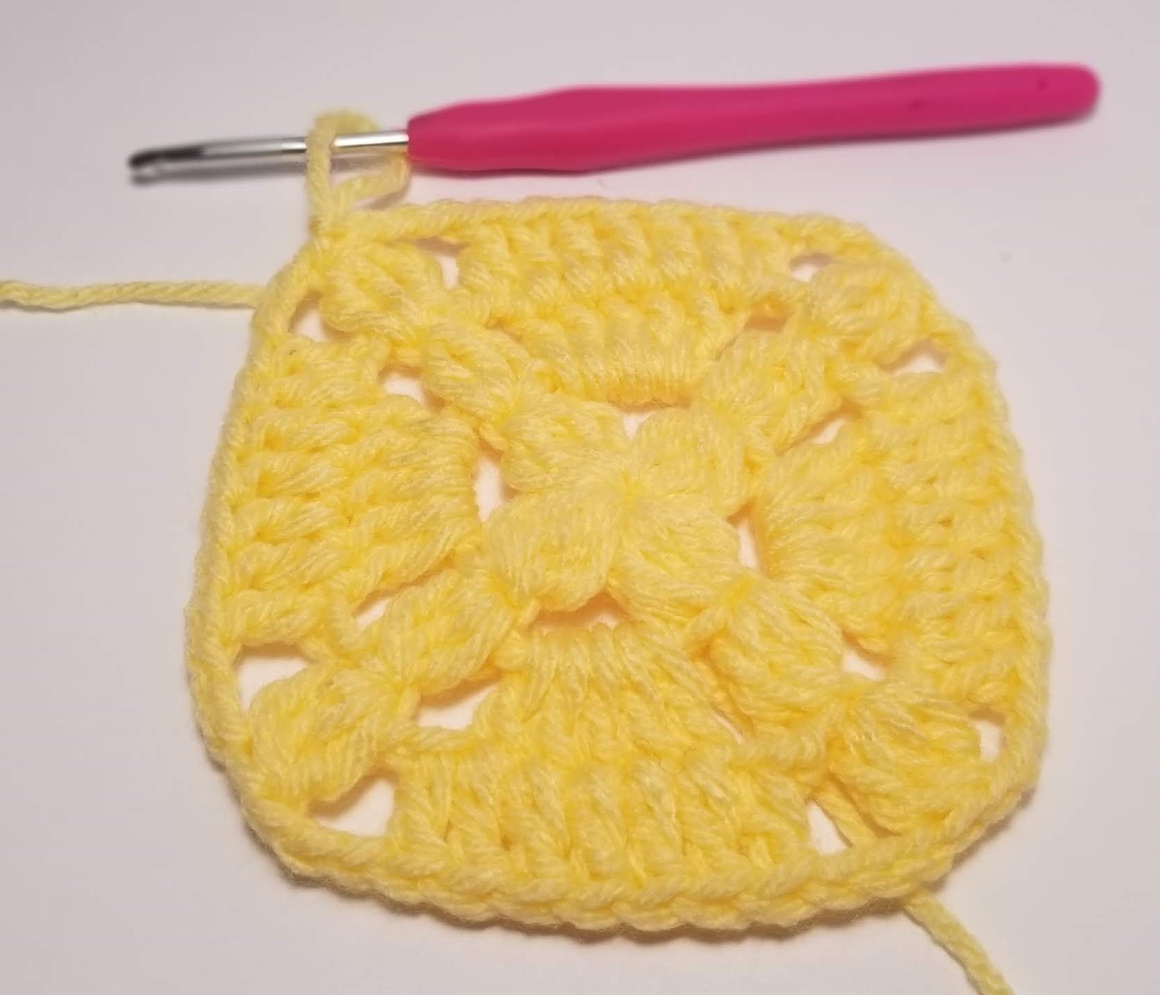 Traditional Granny Squares Step 3Begin in a corner.